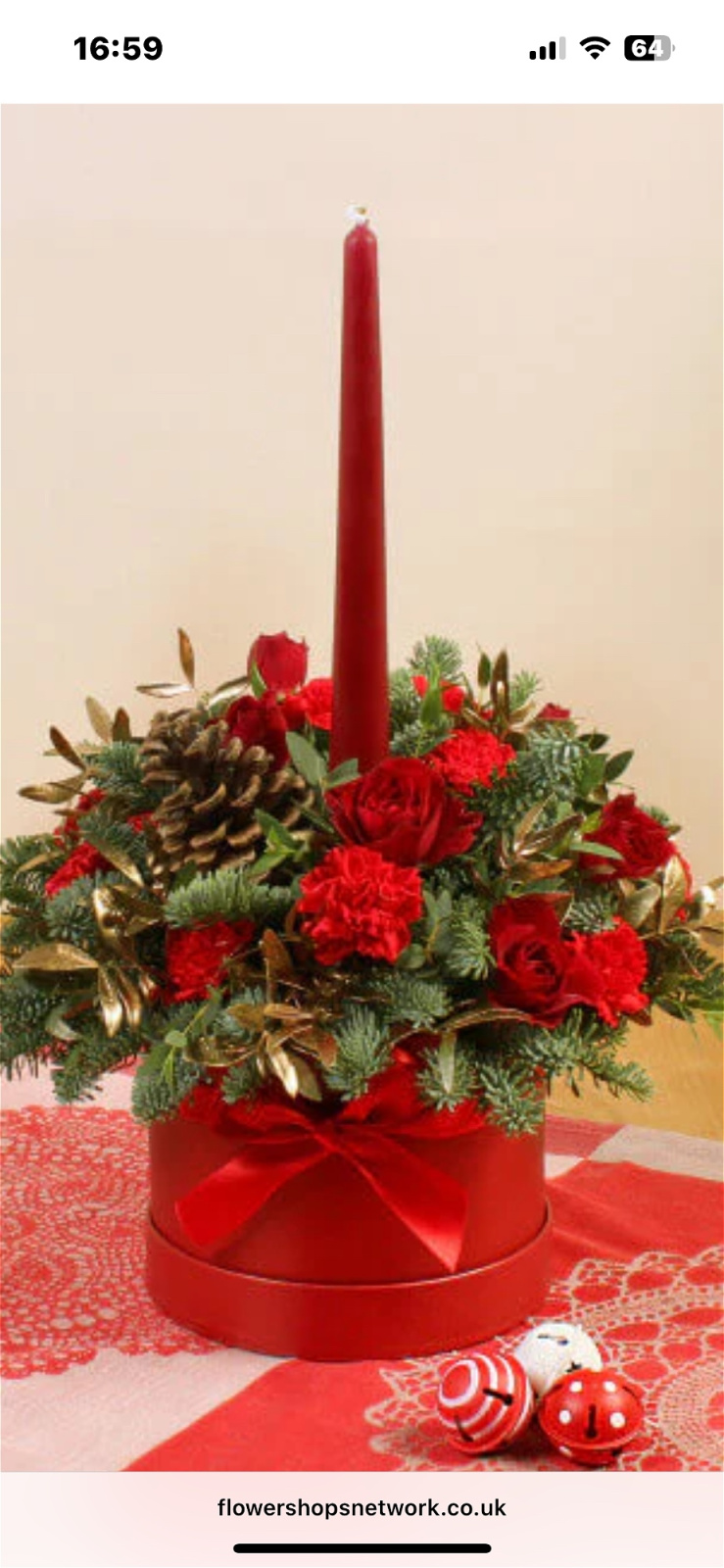 Lovely seasonal table centre with a slim candle